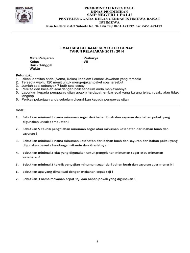Sebagaimana yang kita ketahui bersama bahwa ulangan tengah semester (uts) dilaksanakan setelah materi pelajaran semester genap selesai. soal dan kunci jawaban pat prakarya smp kelas 8 kurikulum 2013 tahun pelajaran 2018 2019 didno76 com. Berikut ini adalah contoh soal penilaian tengah semester (pts/ uts) mata pelajaran prakarya kelas 7 (vii) semester 1 (ganjil/ gasal) smp/ mts berdasarkan kurikulum 2013 edisi revisi 2016/2017. Untuk pembahasan terlengkapnya bisa sobat simak berikut dibawah ini. soal pts/uts prakarya kelas 7 semester 1 smp/mts kurikulum 2013.